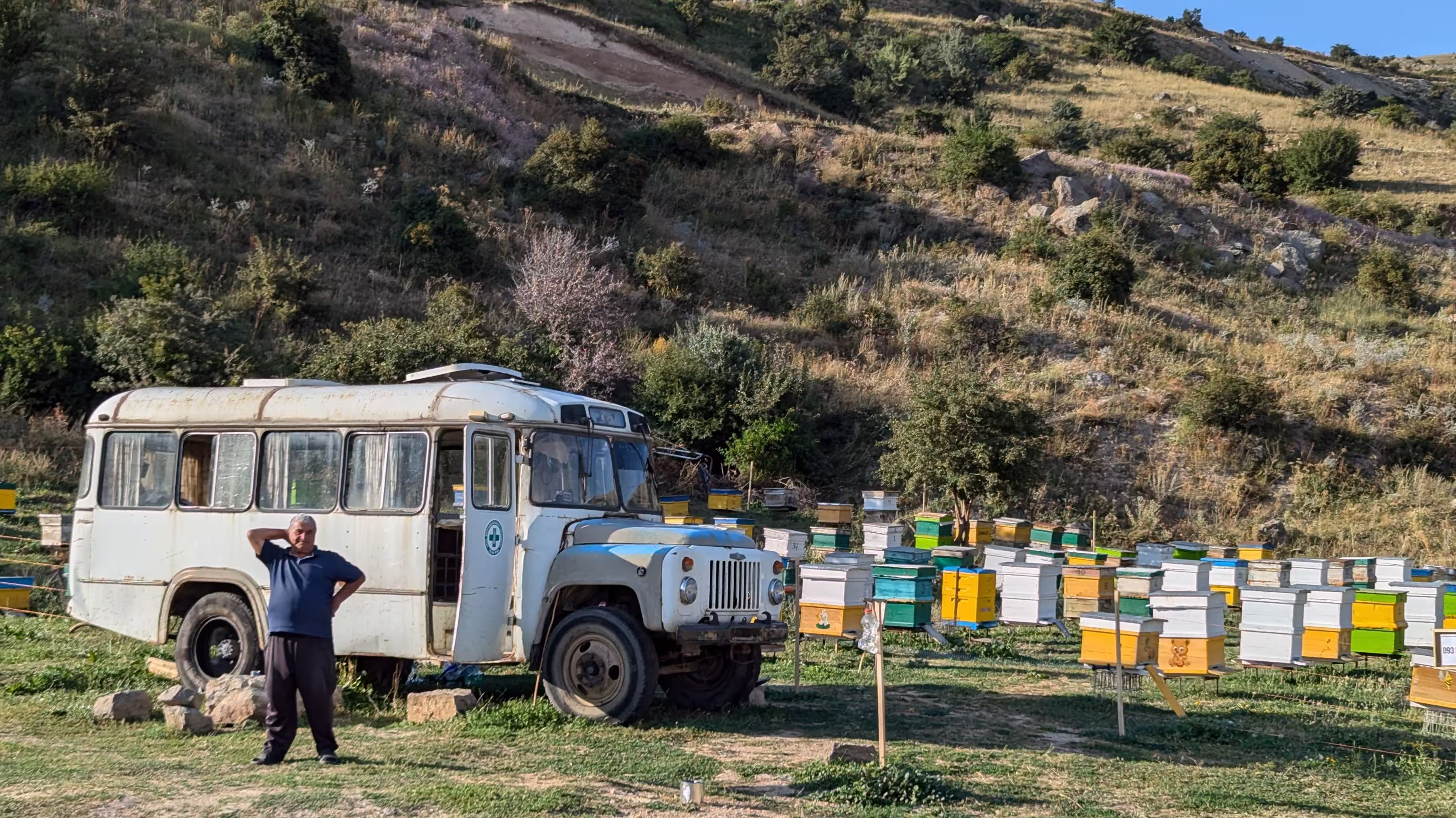Slept in Goris again. As usual, I wake up around sunrise, and while Anton sleeps, wakes up, and gets ready, I do my morning and work stuff. This time the neighbors didn’t peek out :-)